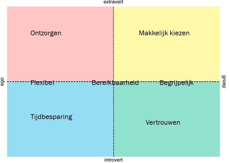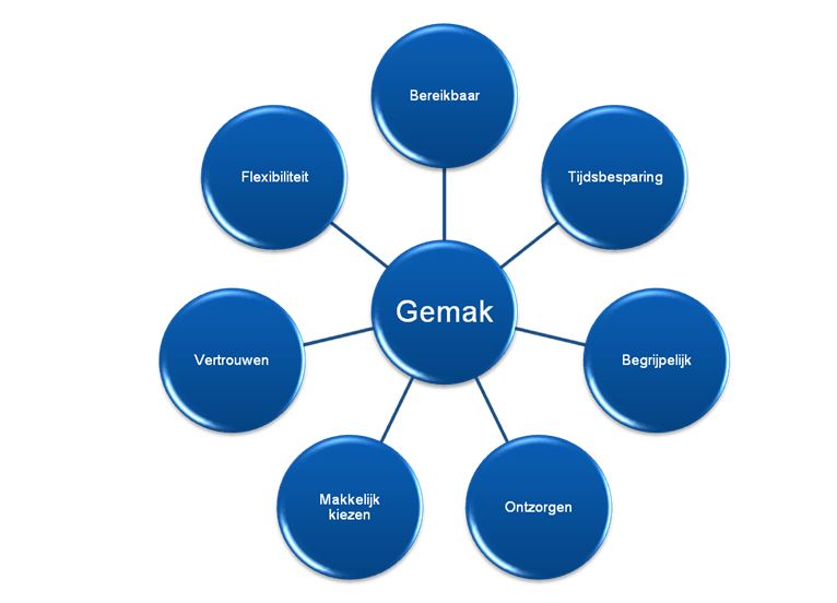 Het zal je opvallen dat sommige gemaksdimensies, zoals tijdsbesparing, heel feitelijk en praktisch zijn, waar andere (bijvoorbeeld ontzorgen) veel minder grijpbaar zijn en emotioneler van aard.