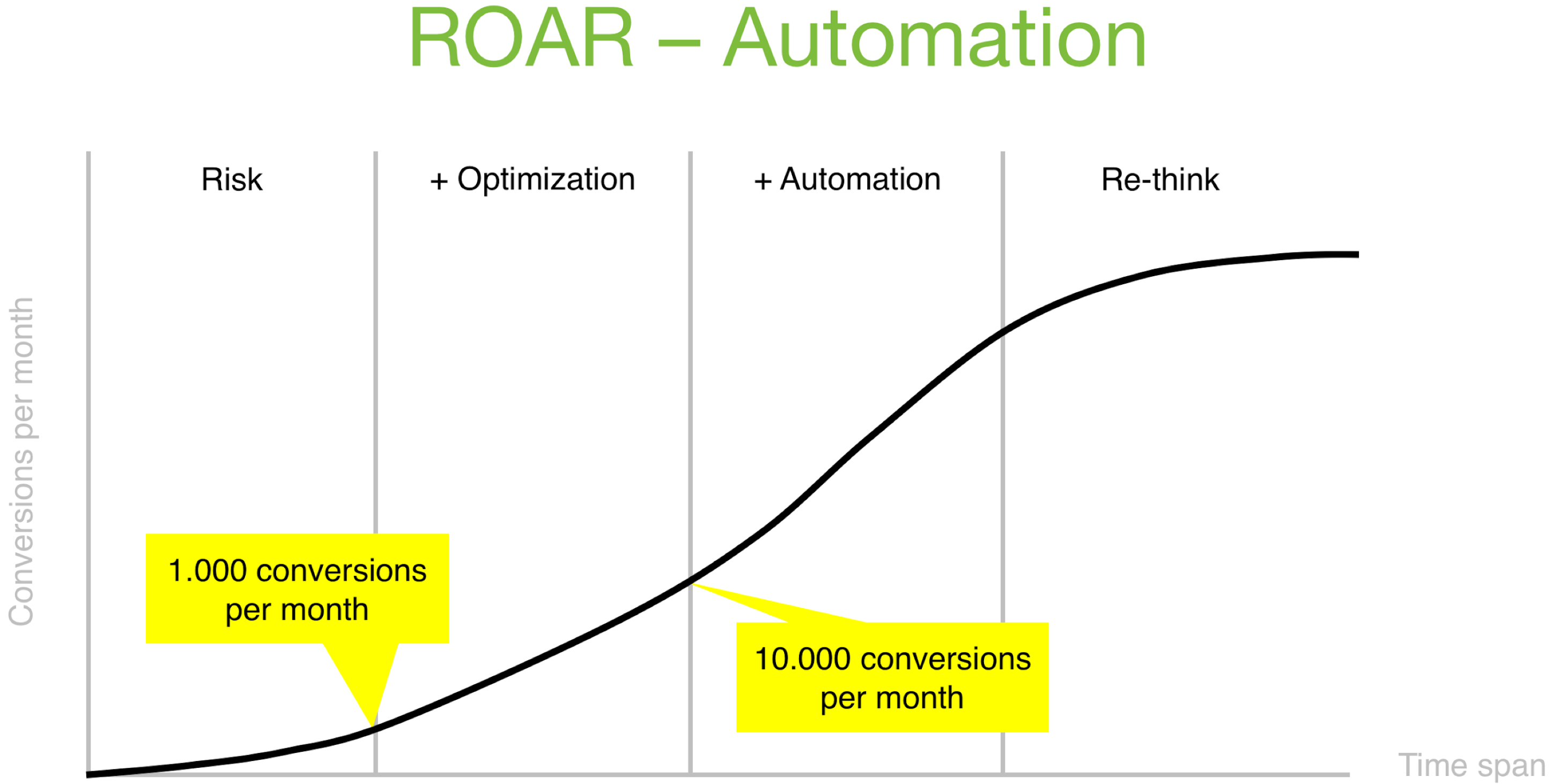 Het ROAR-model is een gestructureerd model gericht op bedrijfsgroei en de handelingen die je moet doen om te blijven groeien. Het model is ontworpen door analytics-veteraan Ton Wesseling, online-optimalisatiespecialist, oprichter Online Dialogue en mede-oprichter Webanalisten.nl. Te vaak zag hij bedrijven dezelfde fouten maken in het groeiproces. Als oplossing bedacht hij een allesomvattend model voor een datagedreven bedrijfscultuur.