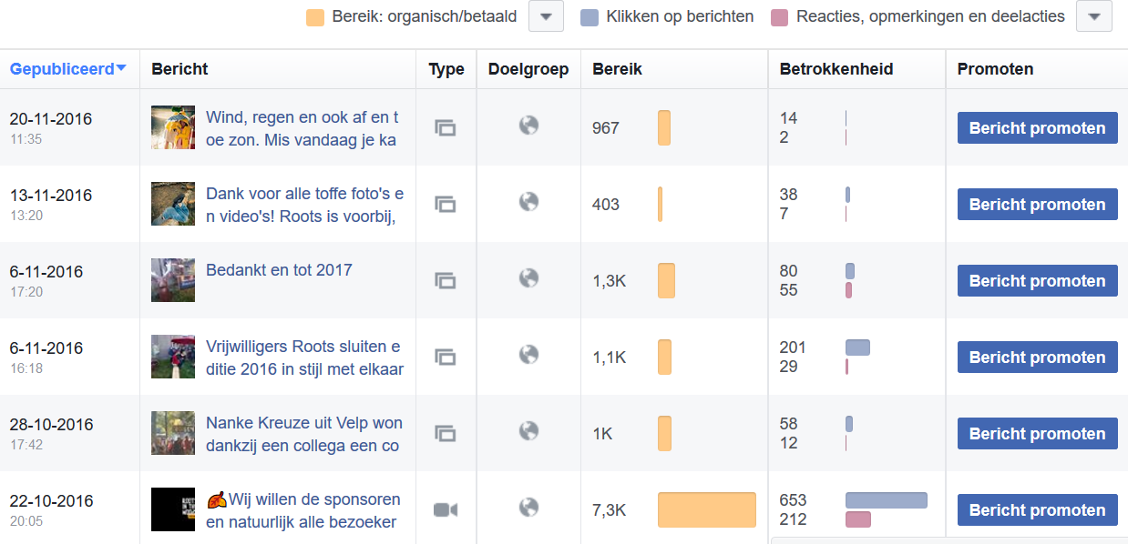 Overzicht prestaties en bereik laat zien welke berichten goed scoren en ‘relevant’ zijn