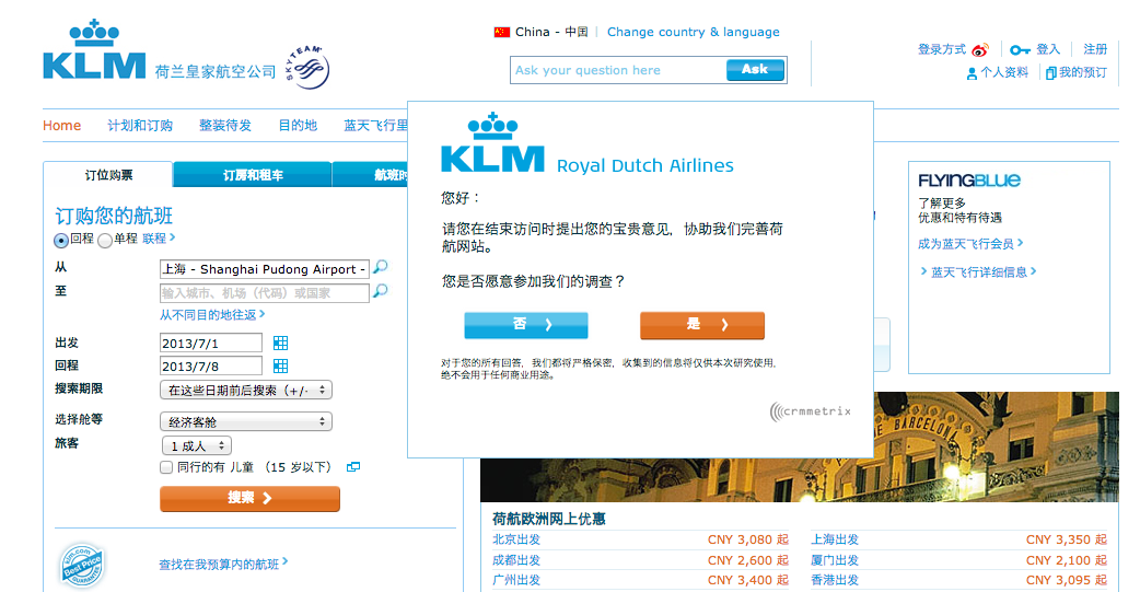 Daarnaast is er een dedicated A/B-tester werkzaam voor KLM.com. Binnen specifieke delen van de KLM-site worden tests uitgezet en wordt er naar optimale conversie gezocht. Veel organisaties kunnen zich waarschijnlijk geen A/B-testers veroorloven, maar voor KLM levert dit uiteindelijk geld op en is dit de investering dubbel en dwars waard.