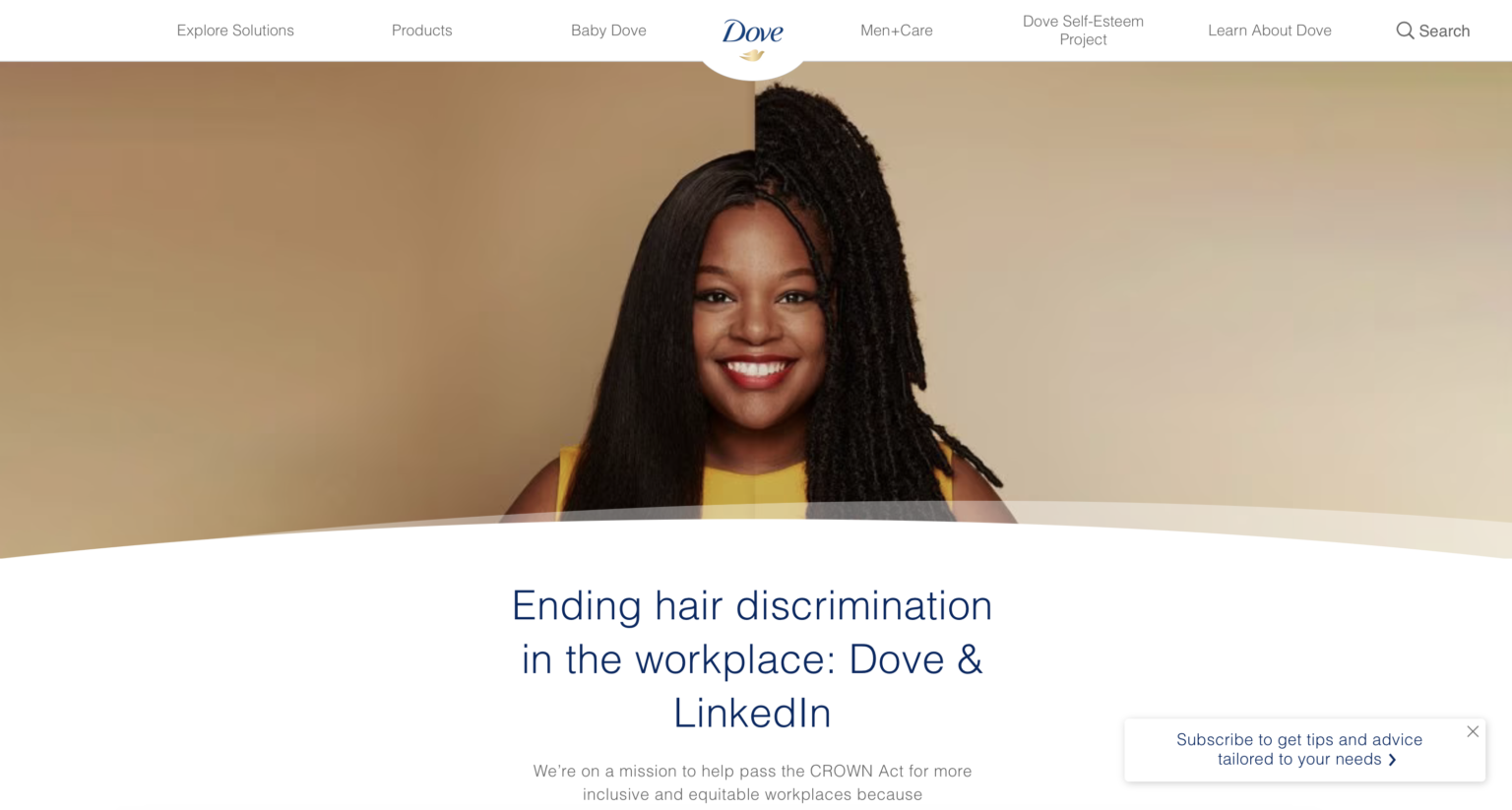 Een opvallende samenwerking. Dove & LinkedIn. Haardiscriminatie. Ik had er nog niet eerder van gehoord maar er zijn op ras gebaseerde haarvooroordelen. En juist op de werkplek is dat een systemisch probleem met een onevenredige impact. En de reden? Het haar van zwarte vrouwen wordt 2,5x zo vaak als onprofessioneel gezien. Dove was medeoprichter van de CROWN Coalition om wetgeving tegen haardiscriminatie te bevorderen, genaamd The CROWN Act. De CROWN Act, wat staat voor Creating a Respectful and Open World for Natural Hair, is een wet die rassendiscriminatie op basis van natuurlijke texturen en beschermende kapsels inclusief vlechten, locs, twists en bantu knots verbiedt.