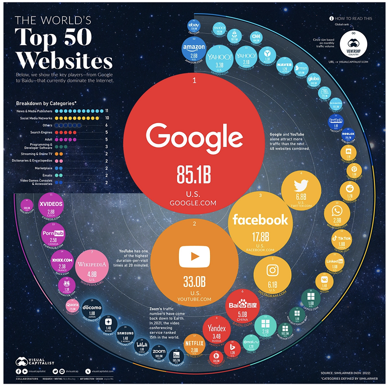 Altijd wel aardig om jezelf een beeld te vormen van de 50 grootste websites van de wereld.
