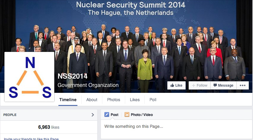 Naast Twitter heeft de organisatie van de NSS2014 ook Facebook ingezet. Dit kanaal had – anders dan Twitter – een minder inhoudelijke component. De Facebook-pagina was meer gericht op de organisatie achter de wereldtop. Zeg maar: behind the scenes. Bedoeld om vooral de organisatie een gezicht te geven en zo draagvlak te creëren onder de Nederlandse bevolking.