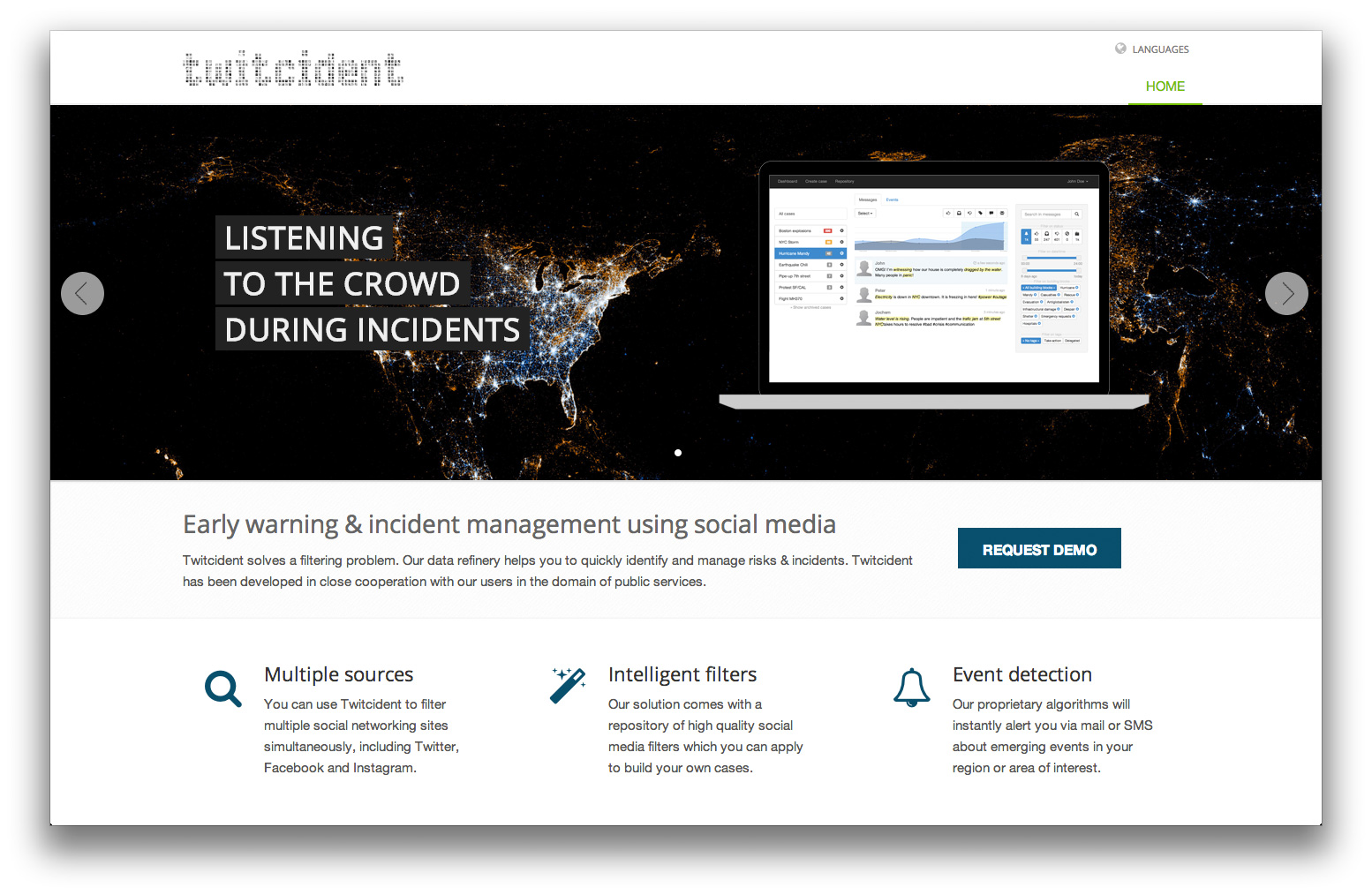 Twitcident is een social media intelligence platform dat ontworpen is om informatie op social media te filteren en waarschuwingen af te geven. En zo incidenten te managen. Het probeert als het ware de ‘human senses’ van alles en iedereen op social media om te zetten in nuttige informatie voor veiligheid en andere maatregelingen voor de openbare orde. Oftewel: ‘geen nieuws’ weet Twitcident te scheiden van ‘echt nieuws’.