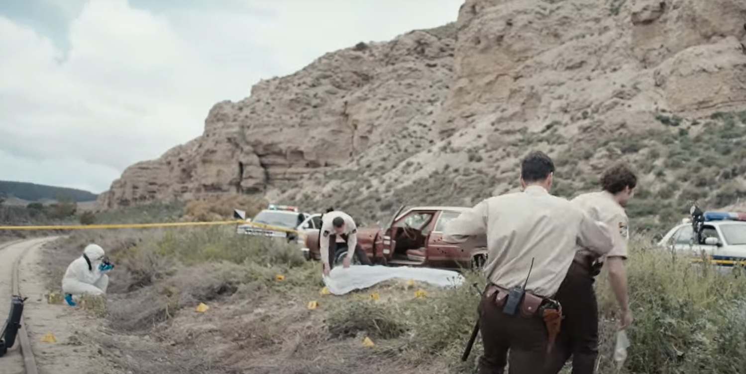 En daar ging het mis. Die leuke, tikje rebelse jongeman is de pineut want hij wordt via het misgegooide blikje gelinkt aan een moord. Hoe weten we dat? Je ziet een lijk liggen met een laken erover en kogelgaten in een auto. Een dodelijk slachtoffer dus. Ik krijg daar een naar gevoel van. En grappig is het, ondanks de vette lach van onze held, daardoor helemaal niet.