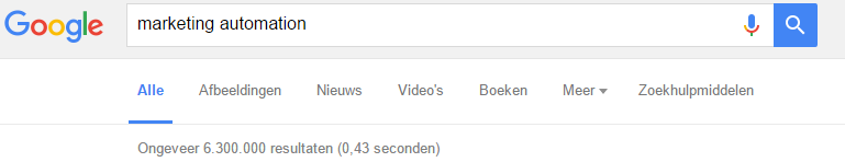 Google op marketing automation en binnen 0,43 seconden komt de zoekmachine met 6.300.000 zoekresultaten.