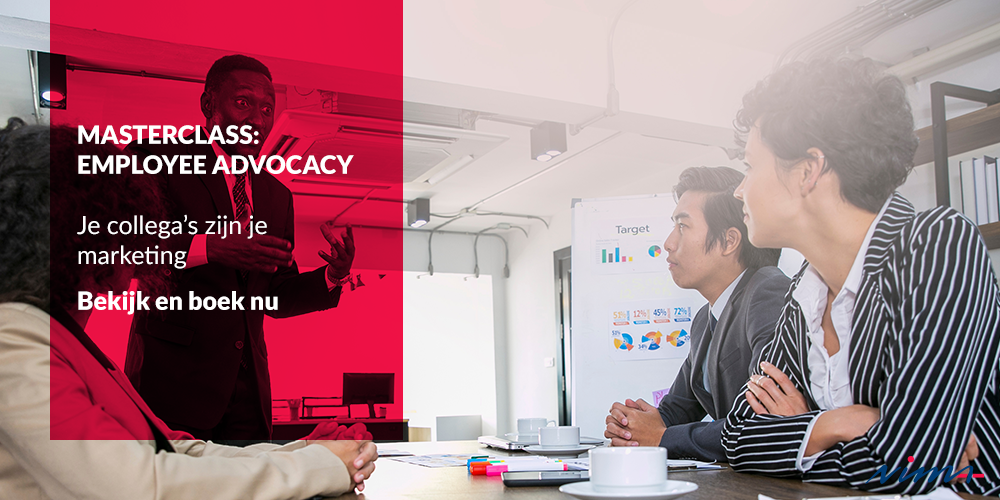 Als organisatie heb je dan ook liever dat een post wordt gedeeld door je medewerkers dan via de bedrijfspagina. Het bereik van 135 ambassadeurs is namelijk veel groter dan een bedrijfspagina met een miljoen volgers, likes of fans. En hetzelfde geldt natuurlijk voor bedrijven met een kleiner aantal medewerkers. Content dat gedeeld wordt door medewerkers heeft maar liefst 561% meer bereik dan wanneer het vanuit een bedrijfspagina gedeeld wordt. Organisaties met betrokken medewerkers doen het dan ook 202% beter dan bedrijven zonder. Maar nu is de vraag hoe krijg je je collega’s zo actief? Dat is waar je mee aan de slag gaat tijdens de NIMA Masterclass: Employee Advocacy.