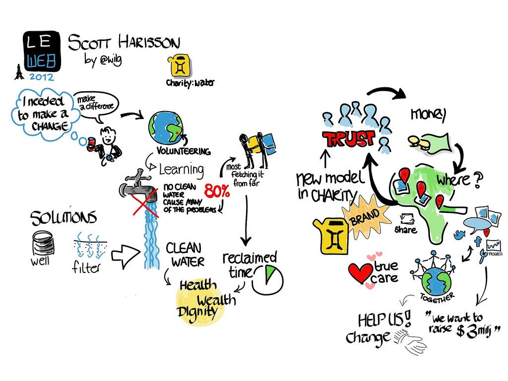Scott Harisson had een enorm aangrijpend verhaal over de watercrisis die bestaat in de wereld. Bijna een miljard mensen in de wereld worden ziek en gaan dood vanwege het gebrek aan schoon drinkwater. Scott kwam in aanraking met deze problemen tijdens een periode van vrijwilligerswerk in Liberia, waar hij werkte op een zieknhuisboot als fotograaf. Terug in New York wilde hij daar verandering in gaan brengen en startte Charity:Water.
