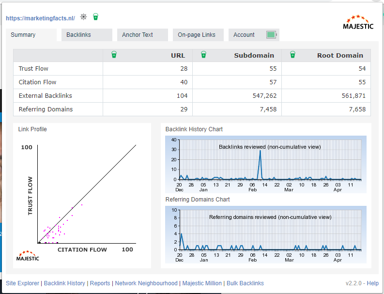 Majestic is de linkbuilding-tool voor de echte liefhebber. Door de overzichtelijkheid en de hoeveelheid data die je krijgt, kun je werkelijk iedere website van top tot teen bekijken. A;s je niet oplet, ben je dan ook zo een aantal uur verder en is het alweer donker buiten.