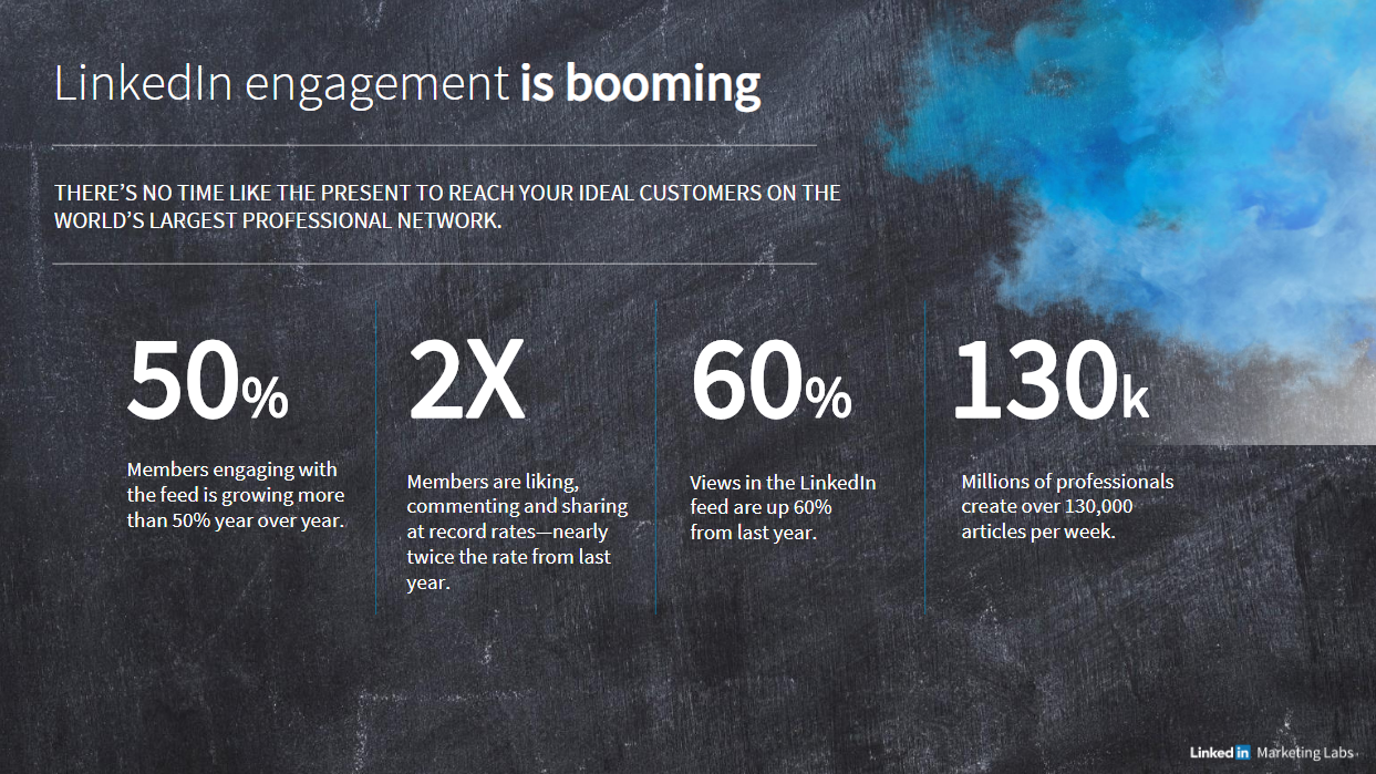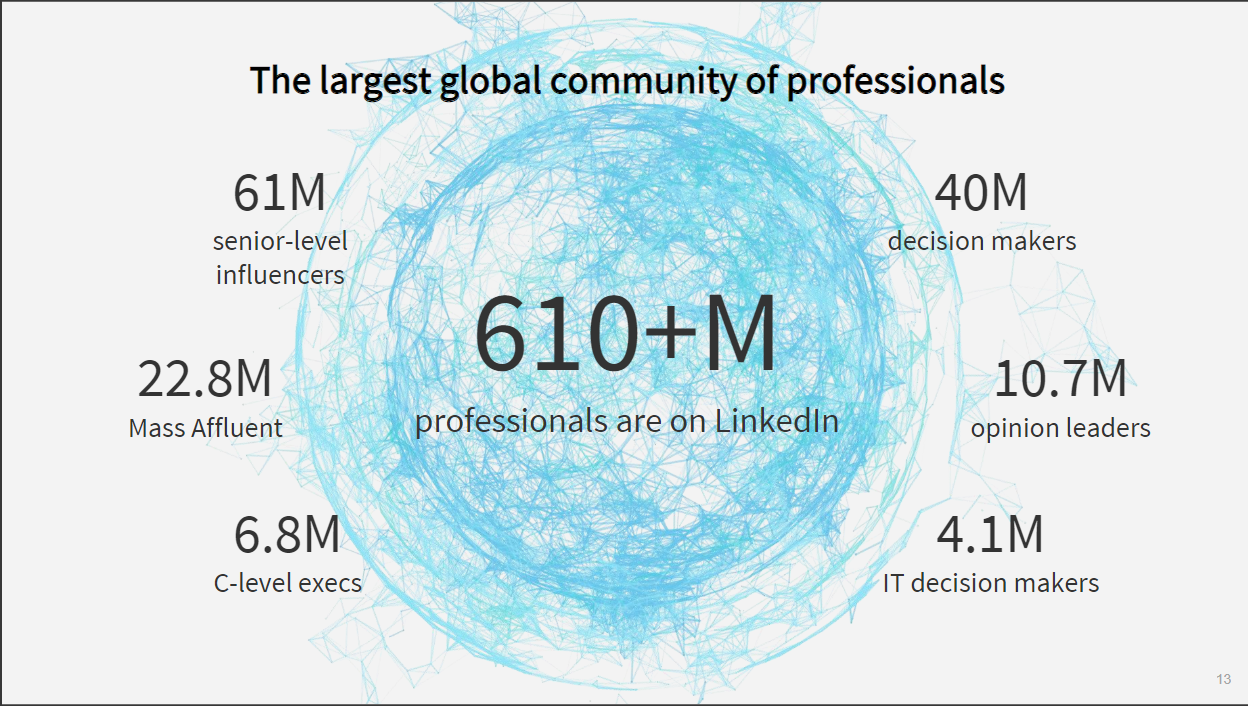 LinkedIn heeft 610 miljoen leden over de hele wereld, waarvan er 7 miljoen zich in Nederland bevinden. In Noord- en West-Europa is er een groei van 35 procent jaar-op-jaar omtrent het aantal updates dat in de nieuwsfeed is bekeken. Over de hele wereld is dat zelfs 60 procent.