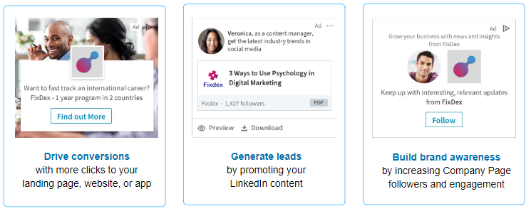 Binnen het advertisingplatform van LinkedIn bestaat een aantal opties: