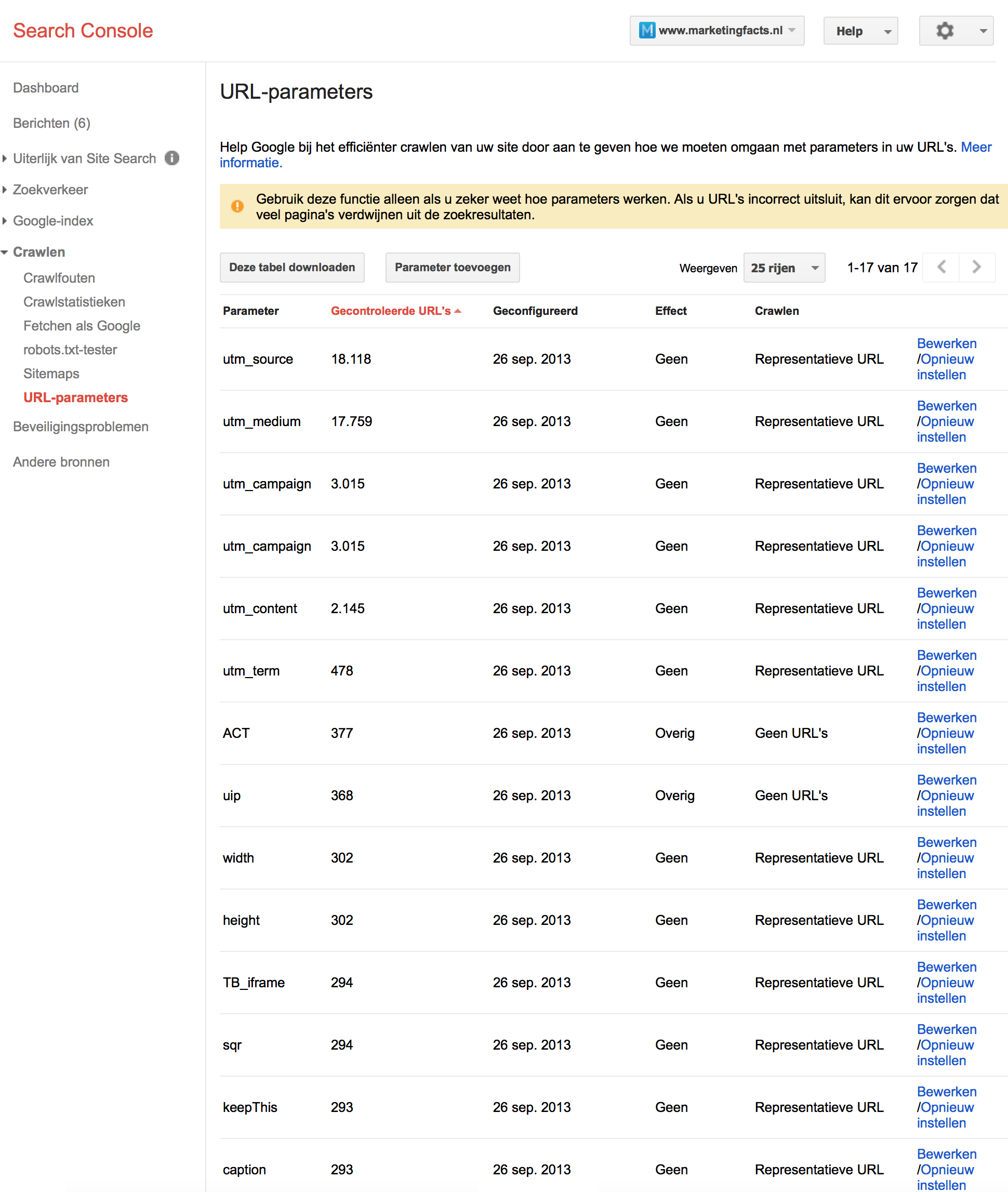 Van andere url-parameters weet Google dit niet. In Search Console kun je onder ‘crawlen -> url-parameters’ vertellen hoe Google moet omgaan met url-parameters.