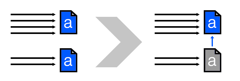 Webpagina’s waarvoor de zoekmachine langere wegen af moet leggen, vallen als eerste af. Het gevaar van duplicate content is dat de zoekmachine op deze foutieve pagina’s stuit voordat hij op de wat oudere, maar wel originele pagina komt. Duplicate content kan zo dus gewenste geïndexeerde content verdringen. Remi verduidelijkt: