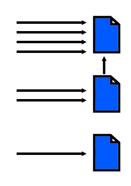 De linkwaarde (ook wel seo-waarde genoemd) hangt onder meer af van het aantal webpagina’s dat naar de pagina in kwestie linkt (ook wel inkomende links genoemd). In onderstaande voorbeeld heeft de eerste pagina de meeste inkomende links. Deze inkomende links kunnen zowel van andere websites afkomstig zijn als van pagina’s in het eigen domein. In onderstaande visualisatie heeft de eerste pagina 4 links van externe websites en 1 vanuit het eigen domein.