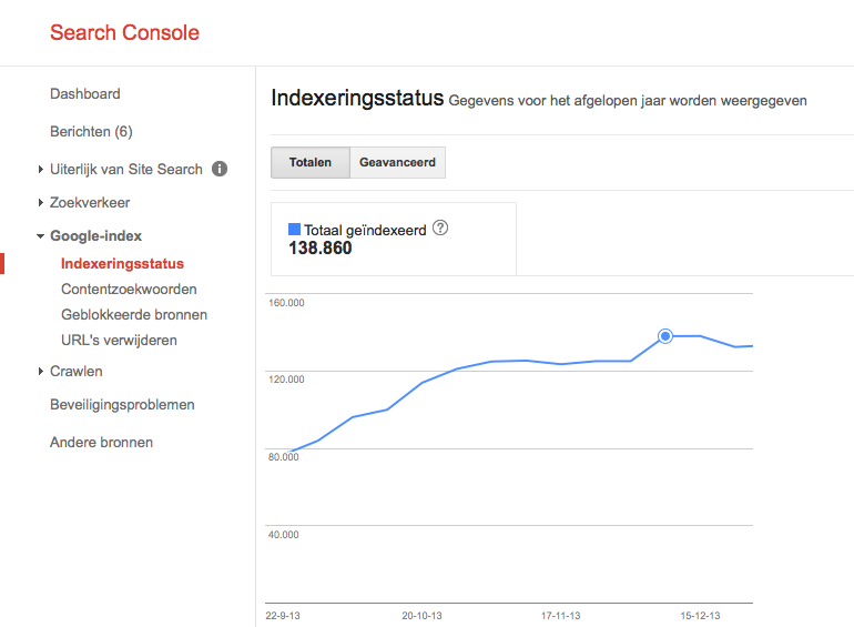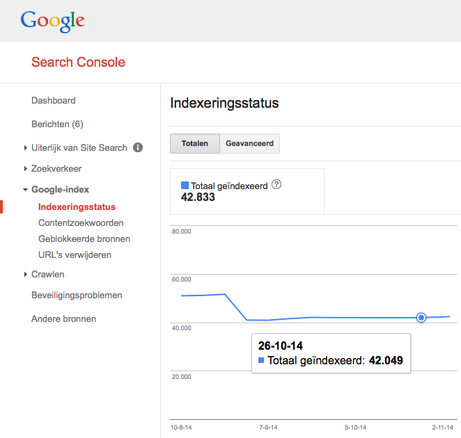 De aanpassingen hebben ervoor gezorgd dat het aantal geïndexeerde webpagina’s is gedaald tot ruim 40.000. Een flinke daling ten opzichte van eind 2013, toen er op het hoogste niveau bijna 140.000 webpagina’s door Google waren geïndexeerd. Zoals ik eerder in het artikel schetste, bestond dat voor een groot gedeelte uit foute webpagina’s.