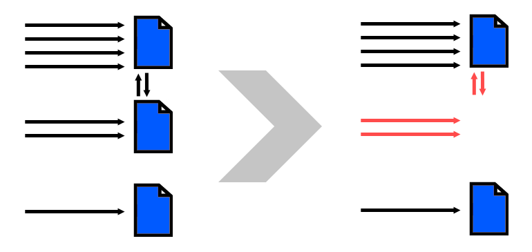 Hier ga ik wat dieper in op wat er gebeurt als je een pagina verwijdert. Als je een link beschouwt als het doorgeven van linkwaarde naar andere pagina’s, dan betekent het verwijderen van een pagina dat linkwaarde die die pagina heeft opgebouwd niet meer wordt doorgegeven aan andere pagina’s. En dat is zonde, zeker als er pagina’s zijn met een hoge linkwaarde.