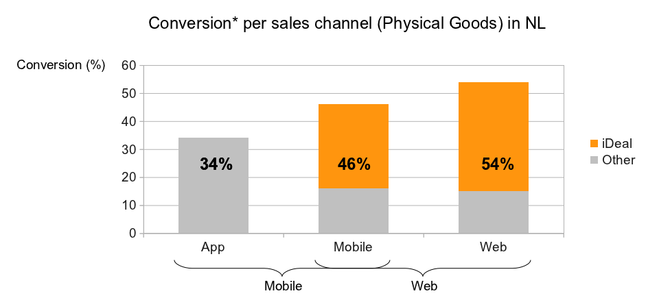 Bij het onderzoek hebben we ook gekeken naar het gedrag van de consument binnen mobiele transacties en daaruit blijkt dat het aantal afhakers binnen een mobiele app 30% hoger ligt dan wanneer men een mobiele website bezoekt en daar een aankoop doet. Dit is eenvoudig te verklaren door het feit dat iDeal nog niet bruikbaar is binnen mobiele applicaties. Sowieso is betalen binnen een mobiele omgeving een trend waar veel over gesproken wordt en waar veel van wordt verwacht, maar waar nog steeds vrij weinig daadwerkelijk echt goed functioneert. Daar komt wel snel verandering in, want met de huidige markt met smartphones en tablets is het een kwestie van tijd voor mensen alleen nog maar via hun mobiele device aankopen willen doen.