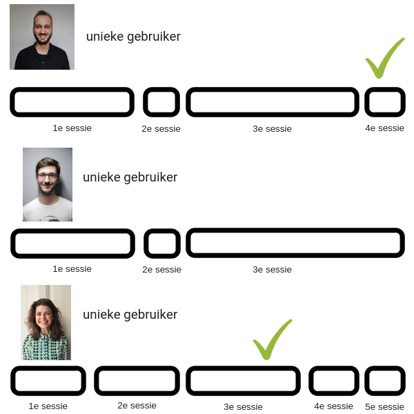 Leuke visuele weergave van het verschil tussen conversies op sessie vs. gebruikersniveau.