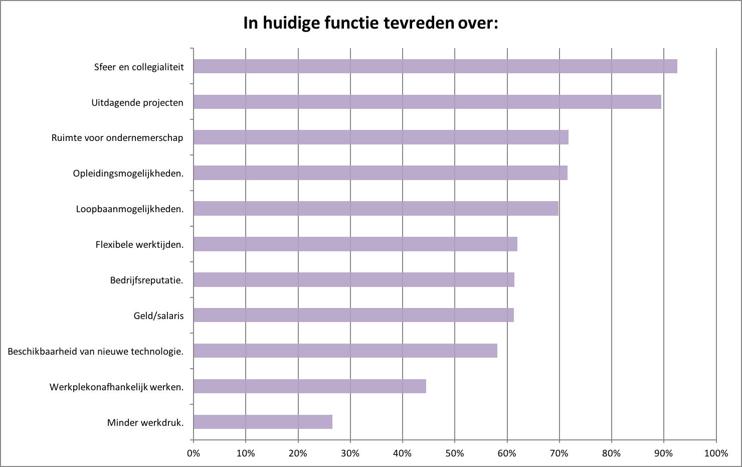 Redenen om juist wel op de te blijven zitten waar marketeers zitten zijn sfeer (86 procent), uitdagende projecten (85 procent), opleidingsmogelijkheden (65 procent), ruimte voor ondernemerschap (65 procent) en loopbaanmogelijkheden (64 procent).