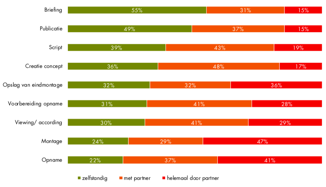 Tijdsgebrek zorgt er dan ook voor dat marketeers video regelmatig uitbesteden. Van de ondervraagden legt 37 procent het merendeel van de videoproducties bij een externe partij. Met name voor de opname en montage van producties maken marketeers gebruik van een videospecialist.