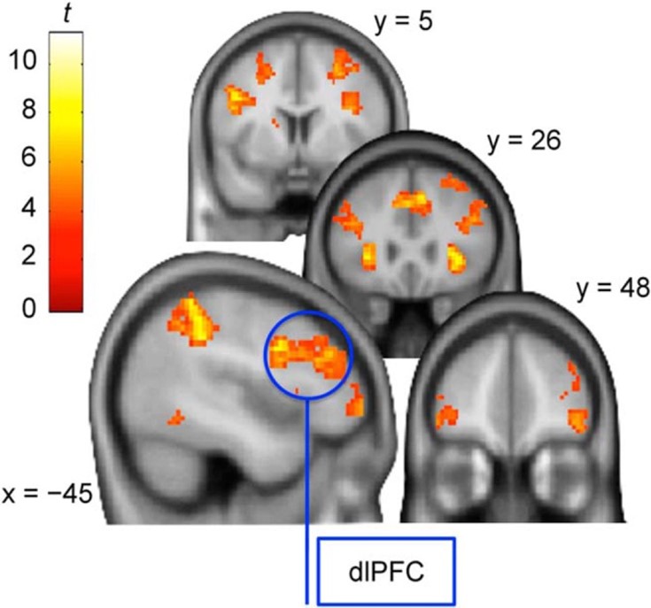 De DLPFC maakt deel uit van grotere beslissingsnetwerken in de hersenen, waarbij het processen coördineert als het werkgeheugen en selectieve aandacht en zoals gezegd het monitoren en het eventueel onderdrukken van gedrag. In het voorbeeld hier, wordt er feitelijke kennis toegevoegd aan de emoties;‘ijs, suiker word je dik van’. Of ‘ik heb al wandelend eigenlijk helemaal niet zoveel calorieën verbrand’. Of ‘een Magnum, heerlijk maar wel erg groot’. Zo wordt de beslissing gevoed met informatie waarop we besluiten af te zien van de aankoop van het ijsje. Of niet natuurlijk. Maar als we dan naar de praktijk van alledag kijken, dan is er geen andere conclusie mogelijk dan dat ons bewustzijn met regelmaat ingrijpt op onze onbewuste drijfveren.