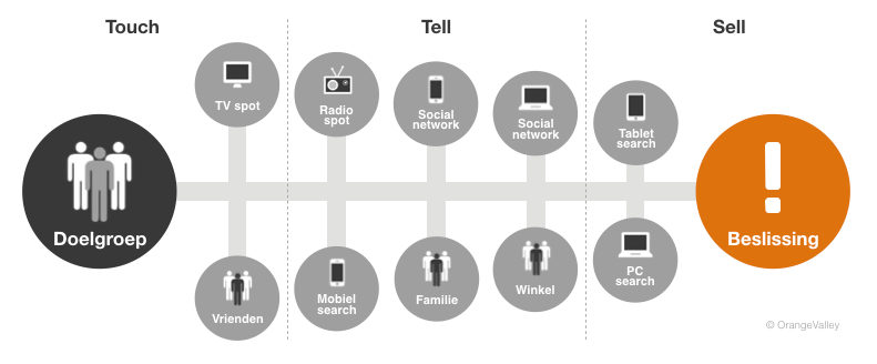 De eerste voorwaarde is het in kaart brengen van de customer journey(s) van je doelgroep. Mensen gebruiken steeds meer media (ook tegelijkertijd) en besteden steeds meer tijd aan digitale media. Mensen denken daarbij natuurlijk helemaal niet in apparaten of marketingkanalen.
