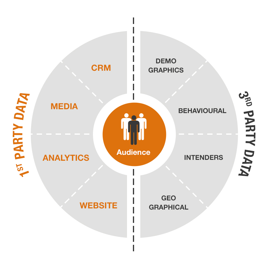 Maak bij die inventarisatie onderscheid tussen first-party data en third-party data. First-party data betreffen informatie die in jouw bezit is, zoals informatie uit je CRM of je webanalyticssoftware. Third-party data zijn informatie die andere partijen tot hun beschikking hebben, zoals demografische gegevens of informatie over het (online) gedrag van mensen.