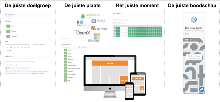 Goswijn Thijssen, hoofd DoubleClick bij Google Benelux, beschrijft programmatic marketing dan ook als “het effectief gebruikmaken van technologie en signalen van het publiek om ze op de juiste tijd en plaats met de juiste boodschap real-time te bereiken”.
