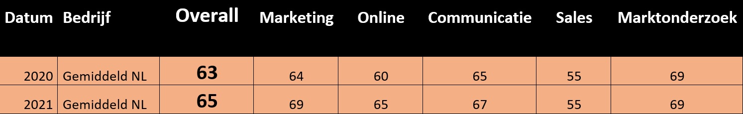 In 2021 trok het gemeten niveau van online marketing nogal aan en dat gold ook voor algemene marketingkennis. Je kunt daar uiteraard een hele theorie achter zoeken, maar daarvoor lijkt de ‘n’ te klein. Wel interessant om te vermelden uiteraard. Huisman benadrukt ook op dat ‘kennis’ allesbehalve zaligmakend is, maar wel heel belangrijk voor een goed functionerend bedrijf: ‘met deze methodiek is dat makkelijk en feitelijk te analyseren, en we zorgen dat de test leuk is om aan deel te nemen’.