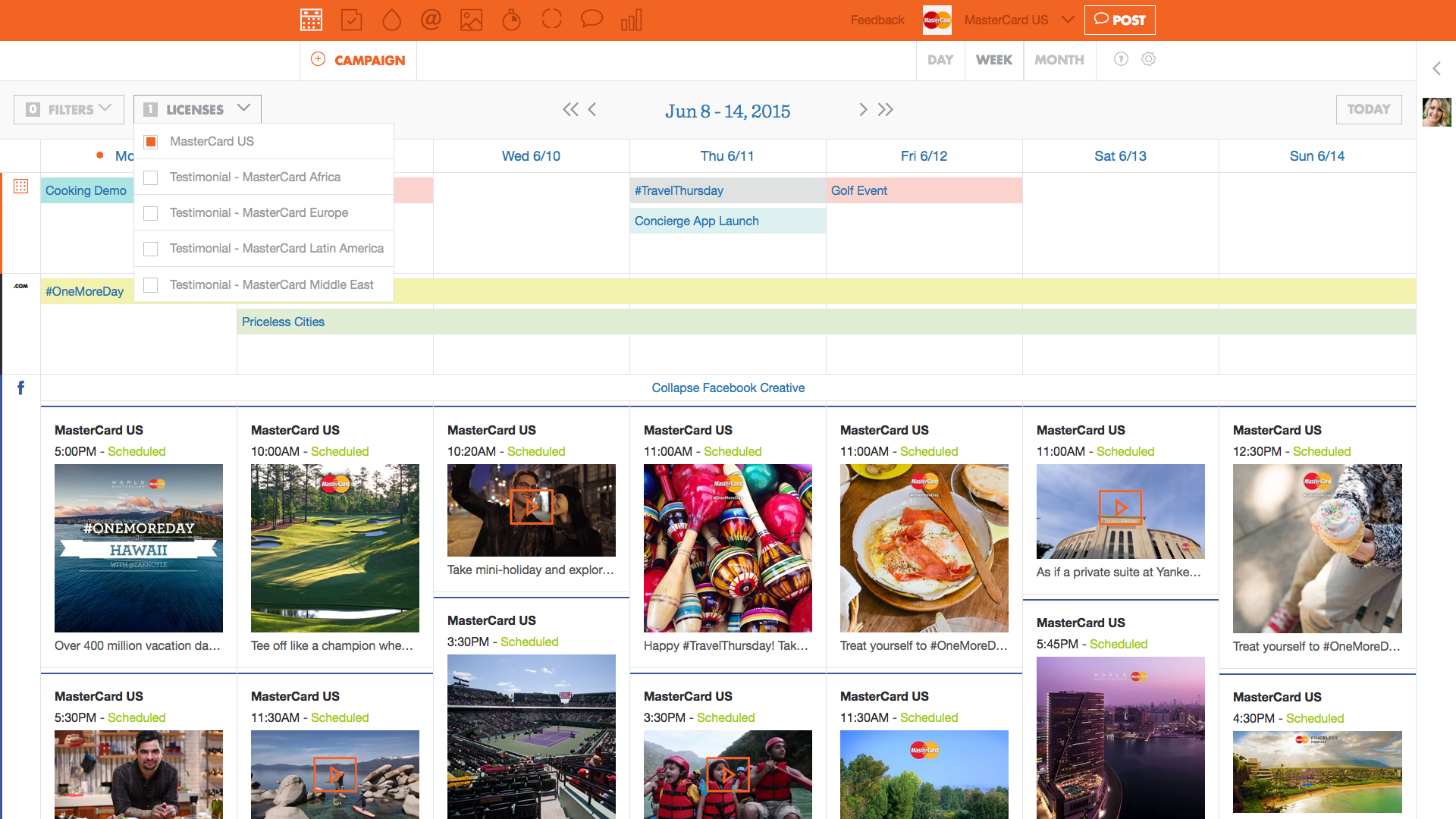 De organisatie laat alle systemen en workflows samenkomen in een hub, waar de contentschrijver, de graphic designer, de community manager en de verschillende bureaus toegang hebben tot alles wat ze nodig hebben om hun taken uit te voeren. In plaats van tijd te ‘verspillen’ aan heen en weer gemail en het zoeken naar interne digitale media, kunnen teams hun tijd nuttiger besteden.