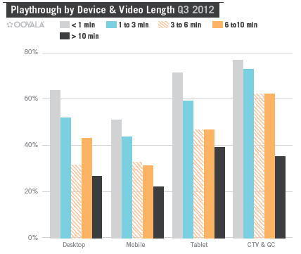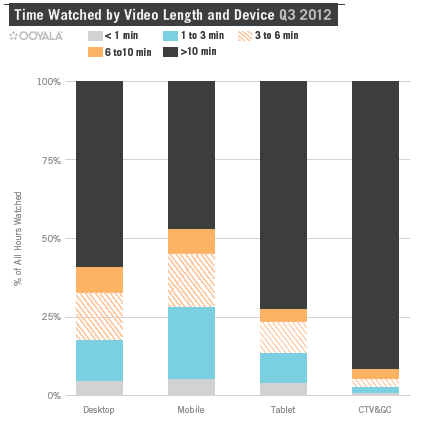 Bij tabletbezitters gaat 71% van hun videoconsumptie naar content van 10 minuten of langer en voor 30% van het gebruik betreft dit zelfs kijksessies van meer dan 1 uur.