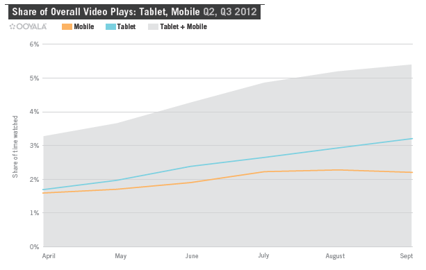 In de rapportage over het eerste kwartaal van dit jaar werd nog gemeld dat met name door de introductie van de nieuwe iPad, tablet-videoconsumptie met 26% was toegenomen, inmiddels is deze nogmaals 90% gegroeid.