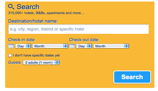 Wanneer je begint met het boeken van een hotel begin je met het invullen van het zoekformulier. Het toepassen van micro strategiën betekent het toepassen van persuasionstrategiën voor elk veld dat ingevuld dient te worden.