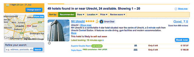 Ik ben een groot fan van Booking.com. Ik moet nog een website tegenkomen welke meer gevorderde beïnvloedingsstrategiën gebruikt dan hen. De feitelijke implementatie daargelaten merk je dat zij beïnvloeding in het DNA hebben zitten.