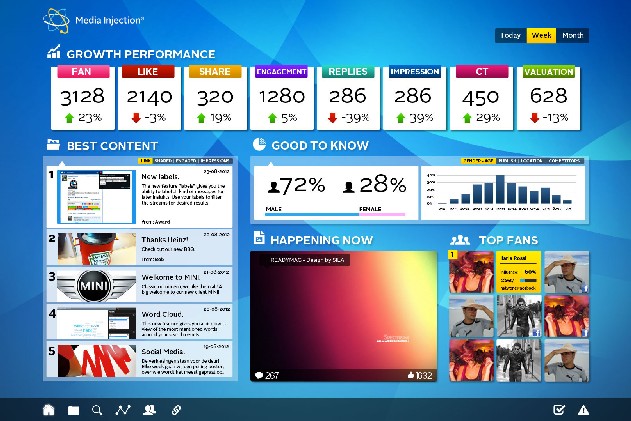 Media Injection is het enige social enterprise pakket op de Nederlandse markt die het volledige spectrum van social media management aanbiedt. Waarbij andere aanbieders veelal zitten op buzz monitoring gaat Media Injection juist uit van de actieve communicatie binnen de owned social channels van een merk.