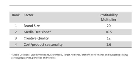 Dat verkeerd inschatten begint overigens al eerder in het proces, namelijk bij het identificeren van de belangrijkste factoren voor het laten groeien van een merk. Marketeers denken dat de verdeling tussen branding en performance, het juist formuleren van de doelgroep en het inzetten van meerdere media de belangrijkste elementen zijn om het merk te laten groeien. Deze elementen helpen zeker en hebben een positief effect op de ROI van marketing-campagnes. Echter, uit onderzoek van Kantar blijkt dat de huidige grootte van het merk en de kwaliteit van creatie veel grotere factoren zijn bij het realiseren van campagne-effect.