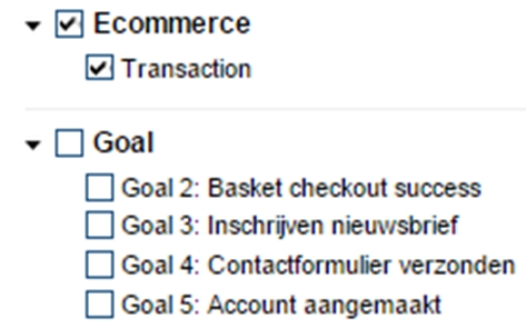 - Zorg dat je alleen de conversiedoelen meeneemt die van belang zijn voor de analyse.