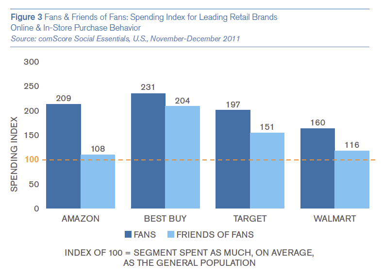 De cijfers van Best Buy (een Amerikaanse electronicaketen) zijn indrukwekkend. Best Buy Facebook-fans spenderen 131% meer dan de gemiddelde internetgebruiker, maar ook hun Facebook-vrienden besteden 104% meer. Voor Target en Walmart komen dit soort cijfers er ook zeer goed uit. Dus binnen het retailsegment is het zeer interessant om social media te activeren, bij een goede inzet werkt het omzetverhogend.