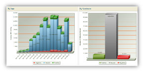 • In het dashboard of via report/alerts kunnen we sentimentgrafieken bekijken. Dit sentiment wordt gemeten op basis van een computergestuurd systeem dat zich baseert op Natural Language Processing studies.