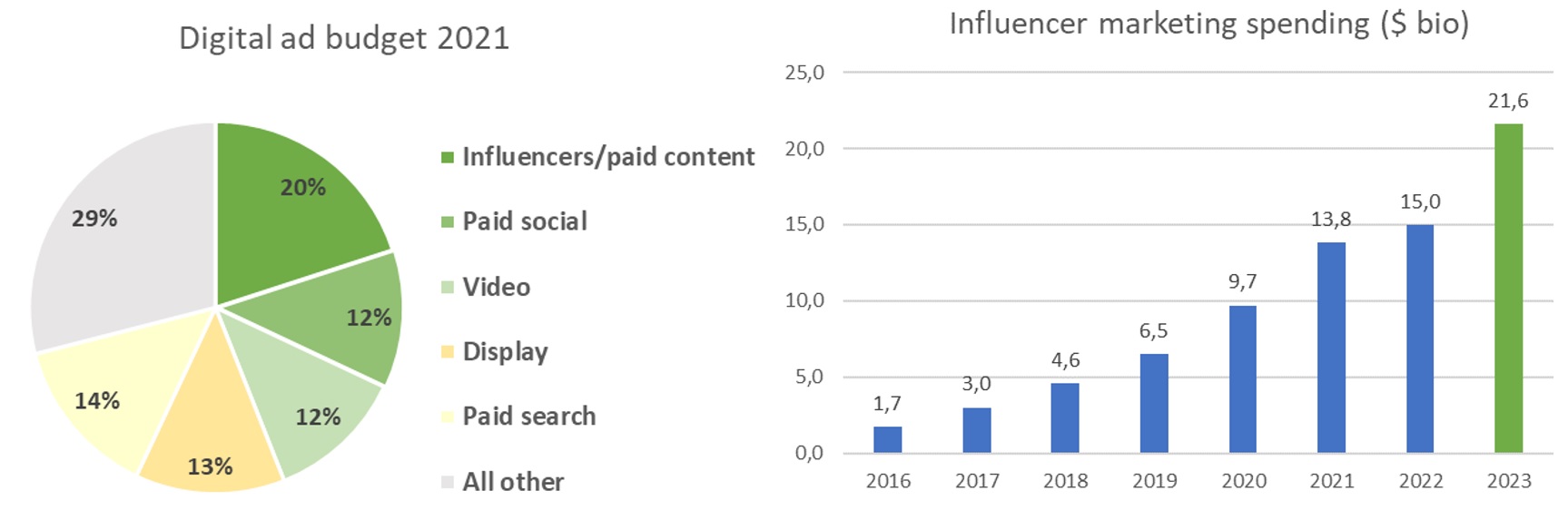 Je kunt je afvragen of het relevant is serieus over influencers na te denken. Kijkend naar onderstaand schema van Mediapost is het antwoord: “ja”. En dat met een CAGR van 43%.