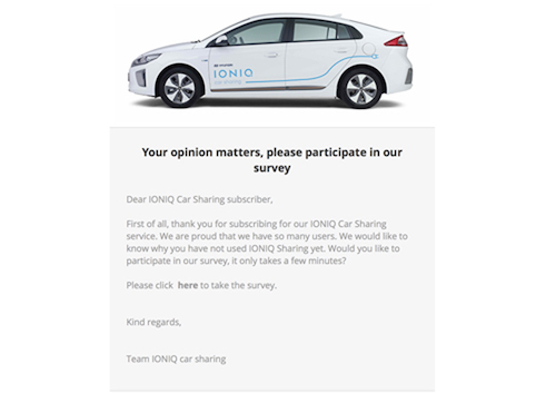 De kern van het bericht: ‘Geachte gebruiker, u heeft Ionic nog niet gebruikt. Wilt u deze enquête van drie minuten invullen waarom dat zo is?’