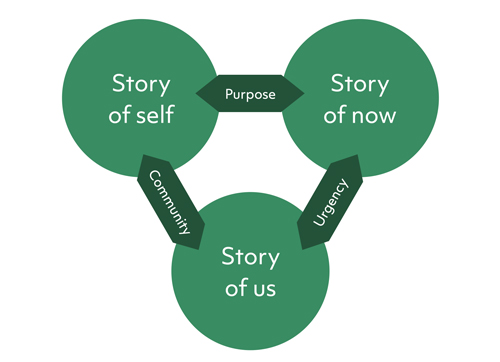 Marshall Ganz van Harvard stelt dat je als leider je verhaal uit drie delen moet opbouwen om je medewerkers te motiveren.
