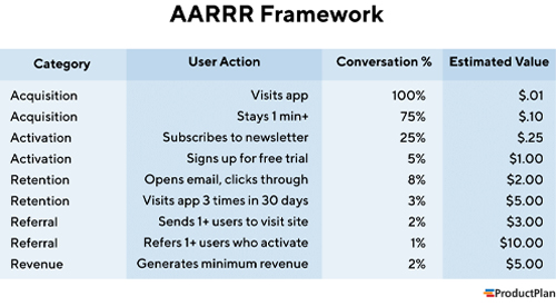 Een veelgebruikt model voor groeimarketing is AARRR: de ‘Pirate metrics’.