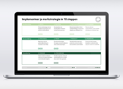 Als laatste, en misschien wel als één van de belangrijkste punten: een merk draait niet om eenmalig acties. Het werken aan een betere reputatie of sterkere bedrijfscultuur vraagt om continue aandacht en continue progressie. Scherp je merkstrategie daarom periodiek aan, op basis van voortschrijdend inzicht of nieuwe ontwikkelen, en veranker deze verder in de organisatie, bijvoorbeeld met nieuwe richtlijnen, nieuwe activiteiten en nieuwe succesmomenten.
