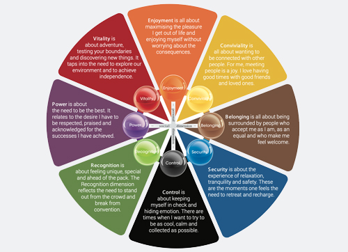 Dit soort patronen meet je met een cluster-analyse. Je kijkt of je groepjes kunt maken van de associaties die vaak voor jouw merk worden genoemd. Deze groepjes kun je vervolgens in een positioneringsmodel plotten. Deze modellen draaien meestal om twee assen: de ene as gaat over persoonlijkheid: draaien de associaties om individualiteit (ik, egocentrisch, winnen) of om collectiviteit (wij, sociaal, verbinden). De andere as gaat over de oriëntatie: gaan de associaties over vrijheid(dynamiek, rebels) of stabiliteit (orde, traditie)?