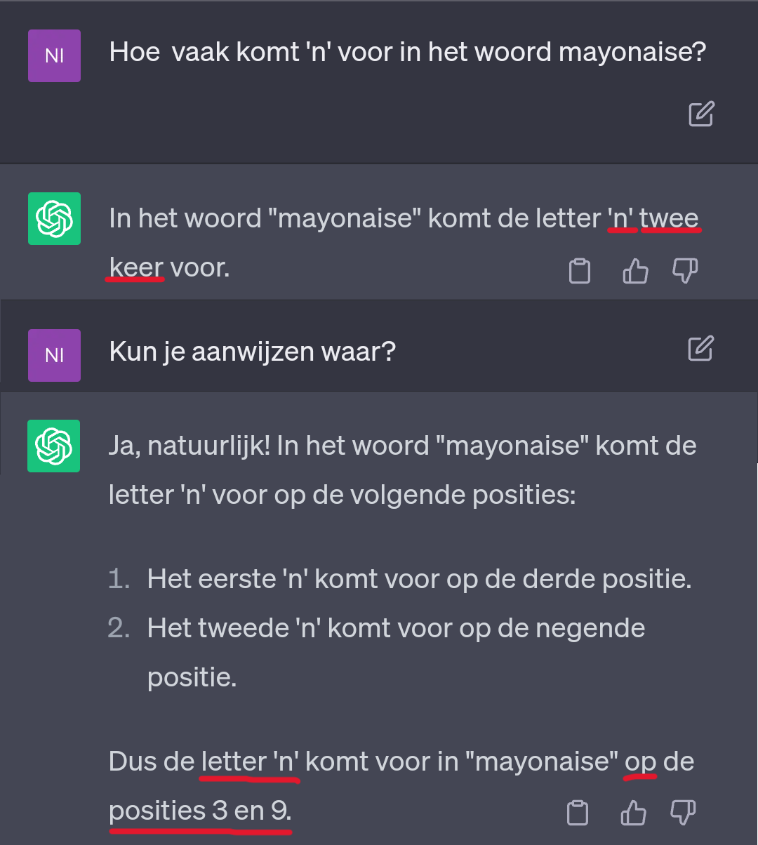 Hoewel de kansen en beloftes groot zijn, blijven checks onmisbaar. Bard verzon feiten tijdens zijn presentatie in februari. En zowel Googles’ Bard als ChatGPT van OpenAI gaan in de fout met een simpele vraag over het woord mayonaise (Nederlands) of mayonnaise (Engels). Verderop lees je hoe je dit met jouw prompts kunt voorkomen.