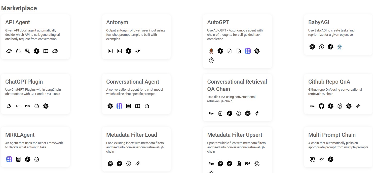 Afbeelding: Flowise marketplace met ‘plug en play’-combinaties van applicaties