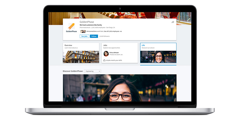 - Het aantrekken van talent. Door de bedrijfscultuur goed in te richten op de pagina werkleven, met aantrekkelijk beeldmateriaal en eventueel video’s, heb je de mogelijkheid een goede eerste indruk te geven aan nieuw talent. Het is een win-win-situatie als medewerkers van de organisatie hun LinkedIn-profiel zo volledig mogelijk inrichten. De profielen van werkzoekenden en medewerkers worden gematcht. Bij een match krijgt de bezoeker dit op de vacaturepagina te zien. Dit kan potentiële medewerkers inspireren bij het beoordelen van de organisatie.