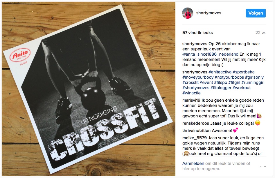 Ook lingeriemerk Anita (Anita Active) zet micro-influencers op Instagram in om binnen de sportcommunity meer bekendheid en betrokkenheid te genereren. Deze micro-influencers hebben een netwerk tussen de 2.000 en de 5.000 volgers en worden uitgenodigd voor events en presentaties.