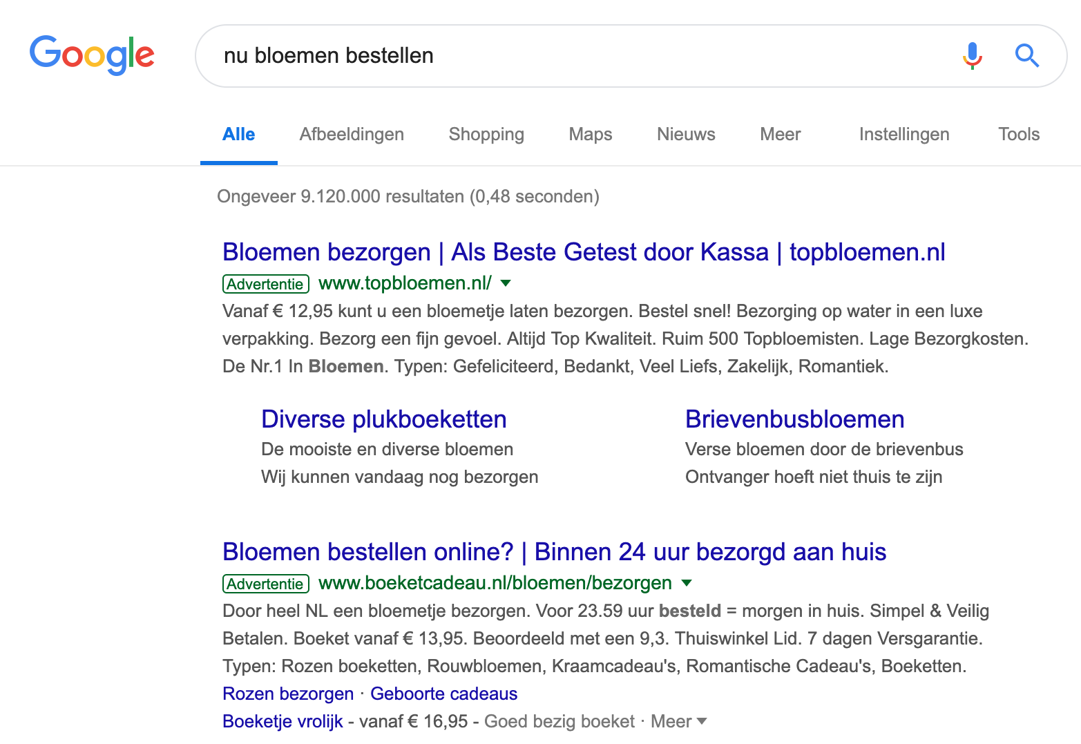 Google advertenties kunnen een goede manier zijn om in te spelen op de zoekacties van potentiële klanten tijdens micro-moments. Zorg voor ‘buy now’-zoekacties waarbij direct duidelijk is wat je aanbiedt en hoe het product te bestellen is. Tijdens een micro-moment heeft een potentiële klant weinig tijd voor ingewikkelde bestelprocessen. Voor de ‘near me’-opdrachten kun je je AdWords-account aan je Google Places-account koppelen, waardoor je advertentie zichtbaar wordt voor zoekacties op locatie.